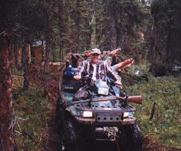loaded with over 600 pounds of moose carcass, and Dave sitting on the seat behind